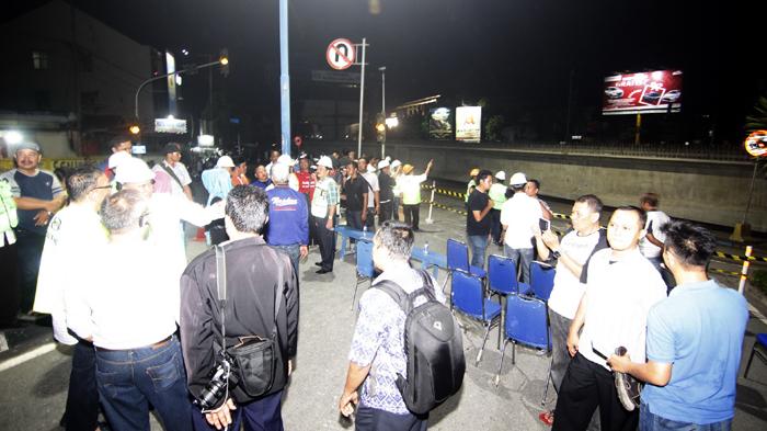POSBELITUNG.COM, SAMARINDA - Pengangkatan bentang tengah Fly Over yang akan menghubungkan Jl AW Syahranie-Jl Juanda sepanjang 60,8 meter, Kamis (5/11/2015) malam, ternyata mengundang perhatian warga.