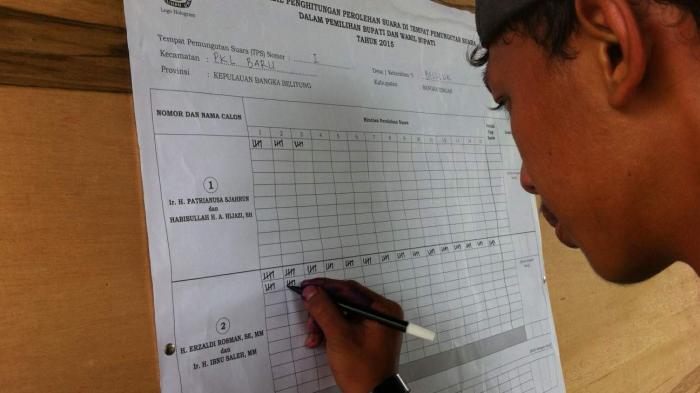 Ilustrasi. Petugas KPPS di TPS 1 Desa Beluluk, Pangkalan Baru, Bangka Tengah menghitung perolehan suara dalam Pemilihan Bupati dan Wakil Bupati Bangka Tengah 2015, Rabu (9/12/2015)