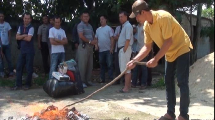 Usai pertemuan selanjutnya barang-barang yang diduga untuk praktek perdukunan dibakar warga.