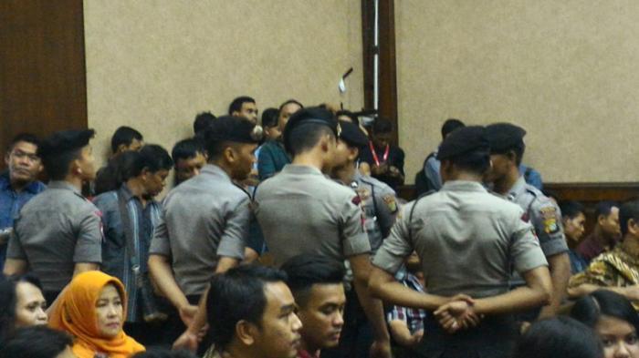 Di dalam ruang sidang, kurang lebih berkisar seratus orang memenuhi ruangan.