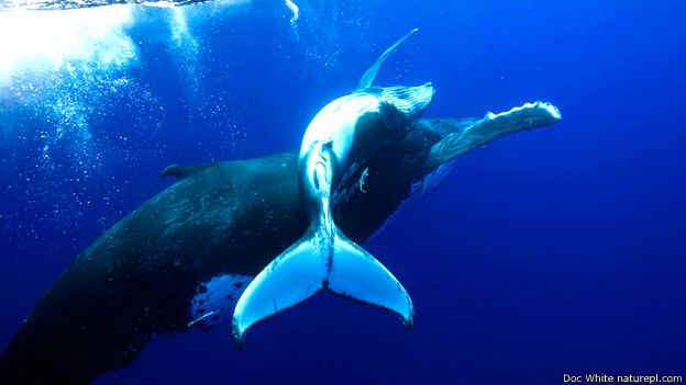Paus berpunuk (Megaptera novaeangliae) dan anaknya di Tonga.