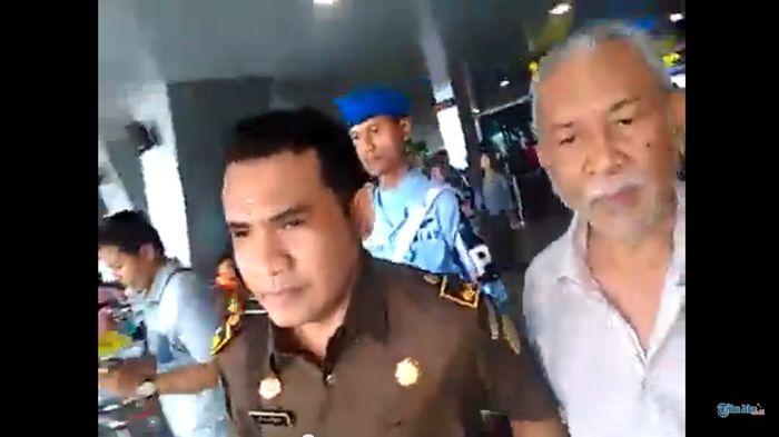 Petugas Kejari Bandung langsung menggiring pria itu ke dalam mobil yang terpakir di luar bandara.