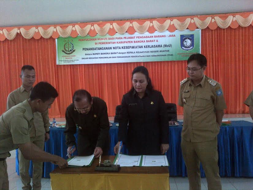 MOU dan penyuluhan hukum bagi para pejabat pengadaan barang dan jasa di pemerintah Kabupaten Babar berlangsung di gedung Diklat, Selasa (12/5/2016) pagi.