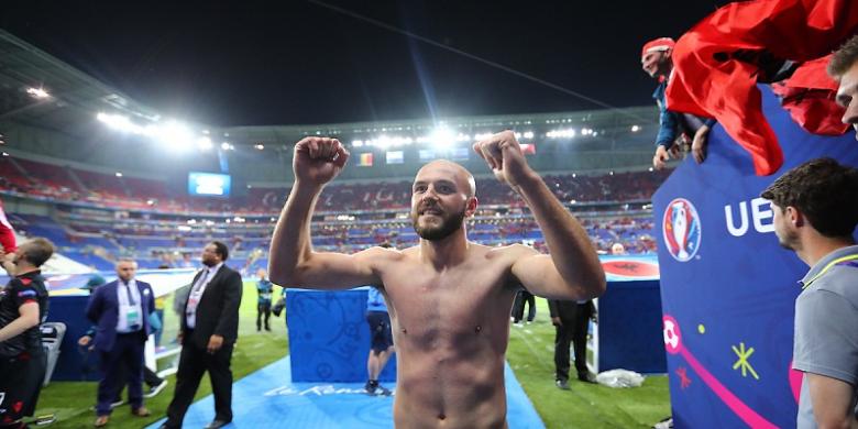 Dok UEFA.com Bek Albania, Arlind Ajeti, meluapkan kebahagiaannya setelah negaranya berhasil memetik kemenangan atas Rumania di Lyon, pada Minggu (19/6/2016) waktu setempat.