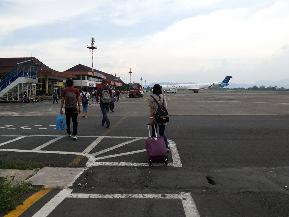 POSBELITUNG.COM, BELITUNG - Arus penumpang maskapai Garuda Indonesia rute Jakarta-Tanjungpandan (pp) dan Tanjungpandan-Pangkalpinang-Palembang (pp) menjelang lebaran mengalami peningkatan.