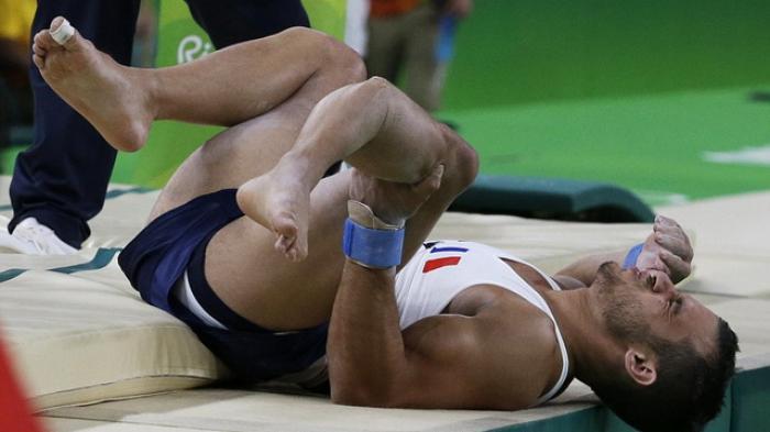 Pesenam artistik asal Perancis, Samir Aid Sait (26) melakukan kesalahan saat pertandingan di Olimpiade Rio 2016.
