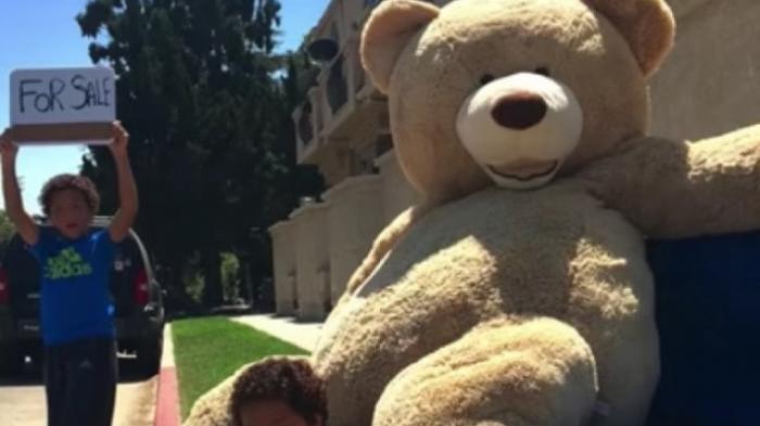 Ayah kedua anak laki-laki itu sebelumnya 'memberi anak-anaknya tugas untuk mendapatkan upah pertama mereka, mereka harus menjual boneka beruang setinggi 2,5 meter.
