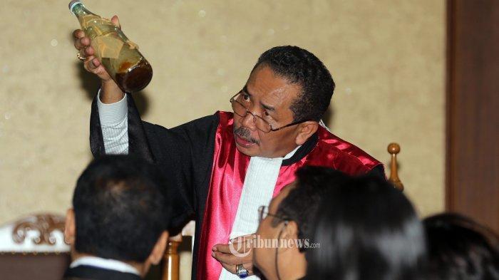 "Kalau dicoba buat di ruang sidang ini, jangan hanya dicampur dan lihat efeknya, tetapi juga coba diminum. Nah, ini yang sulit, mencari siapa yang bersedia untuk meminumnya," jelasnya.