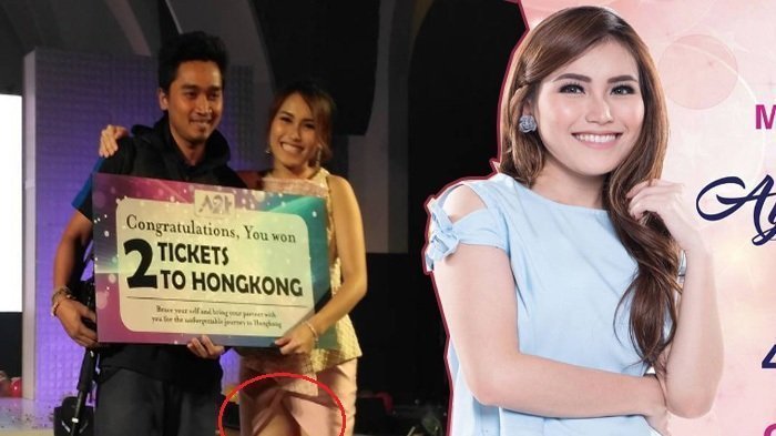 Ayu dalam foto itu tampak memegang hadiah tersebut sambil menggandeng pemenang yang berdiri di sampingnya.
