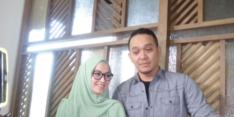Lyra yang mengenakan hijab berwarna hitam didampingi suaminya, M Fadlan saat menyambangi Mapolda Metro Jaya.