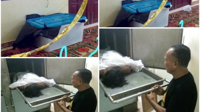 Jadi makin heboh mayat ditemukan di dalam Musala Musyarofah. Ngeri, mayat ditempatkan di dalam boks plastik kontainer warna putih dengan dibungkus kantong kresek besar warna hitam lalu ditutup rapat serta diikat tali rafia.