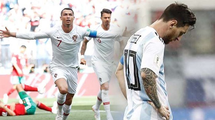 Penampilan antiklimaks Messi, tak dialami oleh pesaing terberatnya, Cristiano Ronaldo.