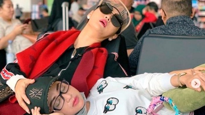Foto bersama Dewi Perssik tidur di Bandara itu diposting oleh Inul Daratista di Instagramnya, Minggu (7/10/2018).
