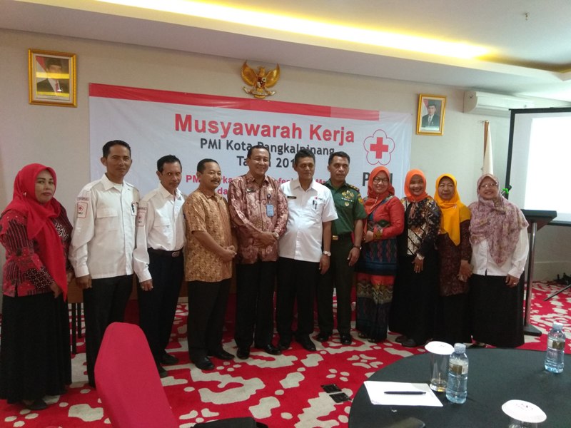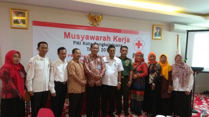 POSBELITUNG.CO, BANGKA -- Walikota Pangkalpinang diwakili Asisten Bidang Pembangunan dan Kesra, Suparyono membuka kegiatan Musyawarah Kerja Kota (Mukerkot) PMI Kota Pangkalpinang dalam rangka Evaluasi Kegiatan Tahun 2018 dan menyiapkan Rencana Kegiatan Tahun 2019 di Sahid Bangka Hotel Pangkalpinang, Kamis (20/12/2018).