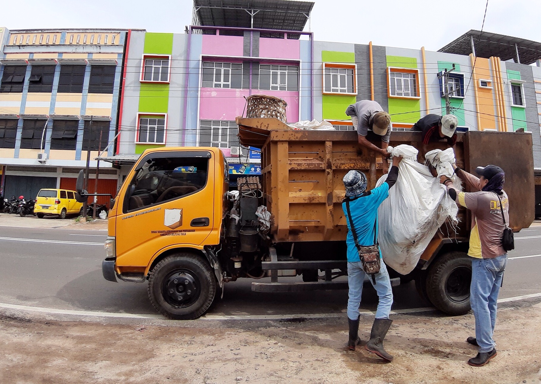 Beberapa petugas kebersihan di Manggar masih bertugas seperti hari-hari biasanya mengangkut sampah-sampah dan membersihkan lingkungan jalan di seputaran kota manggar.