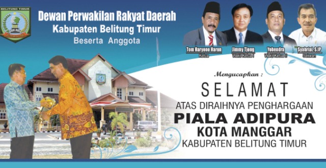 DPRD Belitung Timur mengucapkan selamat atas penghargaan Adipura untuk Belitung Timur.