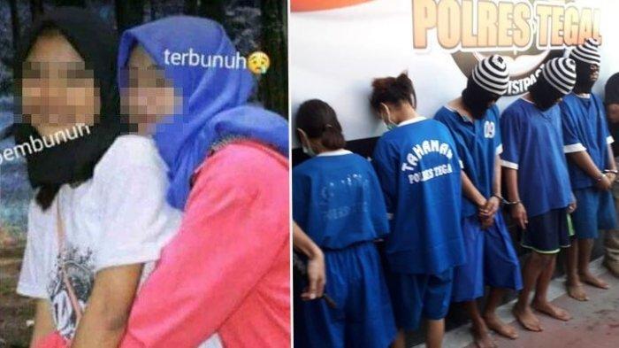 Foto semasa hidup korban dan pelaku (kiri), Para pelaku dihadirkan dalam jumpa pers kasus pembunuhan Nurkhikmah (16) di Mapolres Tegal, Jumat (15/8/2019).