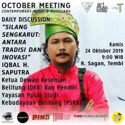 POSBELITUNG.CO,BELITUNG-- Ketua Dewan Kesenian Belitung Iqbal H. Saputra menjadi pembicara pada October Meeting yang merupakan event tahunan yang digagas para seniman yg tergabung dalam Art Music Today di Yogyakarta, Kamis (24/10/2019).