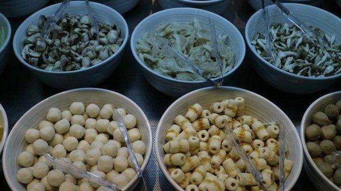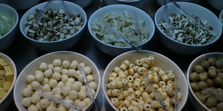 Satu bagian panci diisi dengan kaldu asin dan bagian sebelahnya diisi kaldu manis.