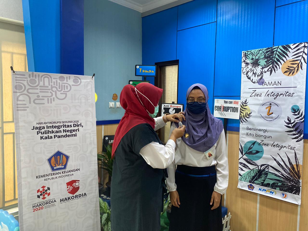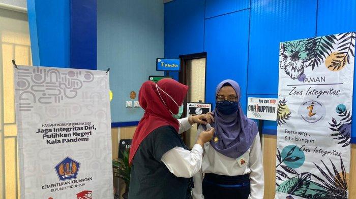 Pekan Hakordia dimulai dengan penyematan pin Hakordia 2020 oleh Kepala KPPN Tanjungpandan Yessy Silvia Maharini secara simbolis kepada pegawainya.