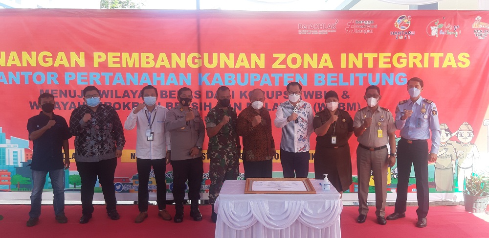 POSBELITUNG.CO, BELITUNG - Demi memberikan pelayanan paripurna kepada masyarakat, Kantor Badan Pertanahan Nasional (BPN) Kabupaten Belitung mencanangkan pembangunan menuju Zona Integritas (ZI) menuju Wilayah Bebas dari Korupsi (WBK) pada Kamis (2/12/2021).