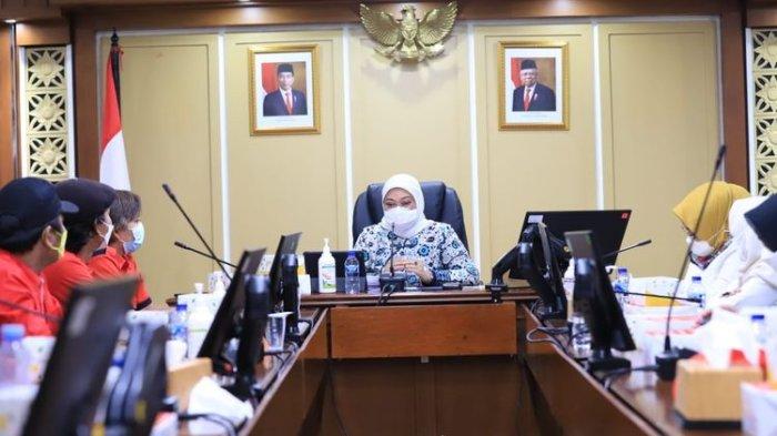 Kedatangan mereka diterima langsung oleh Menteri Ketenagakerjaan, Ida Fauziyah dan melakukan audiensi.