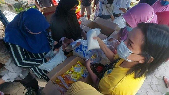 Puluhan emak-emak terlihat dari pagi sudah memenuhi lapak penjualan minyak goreng.