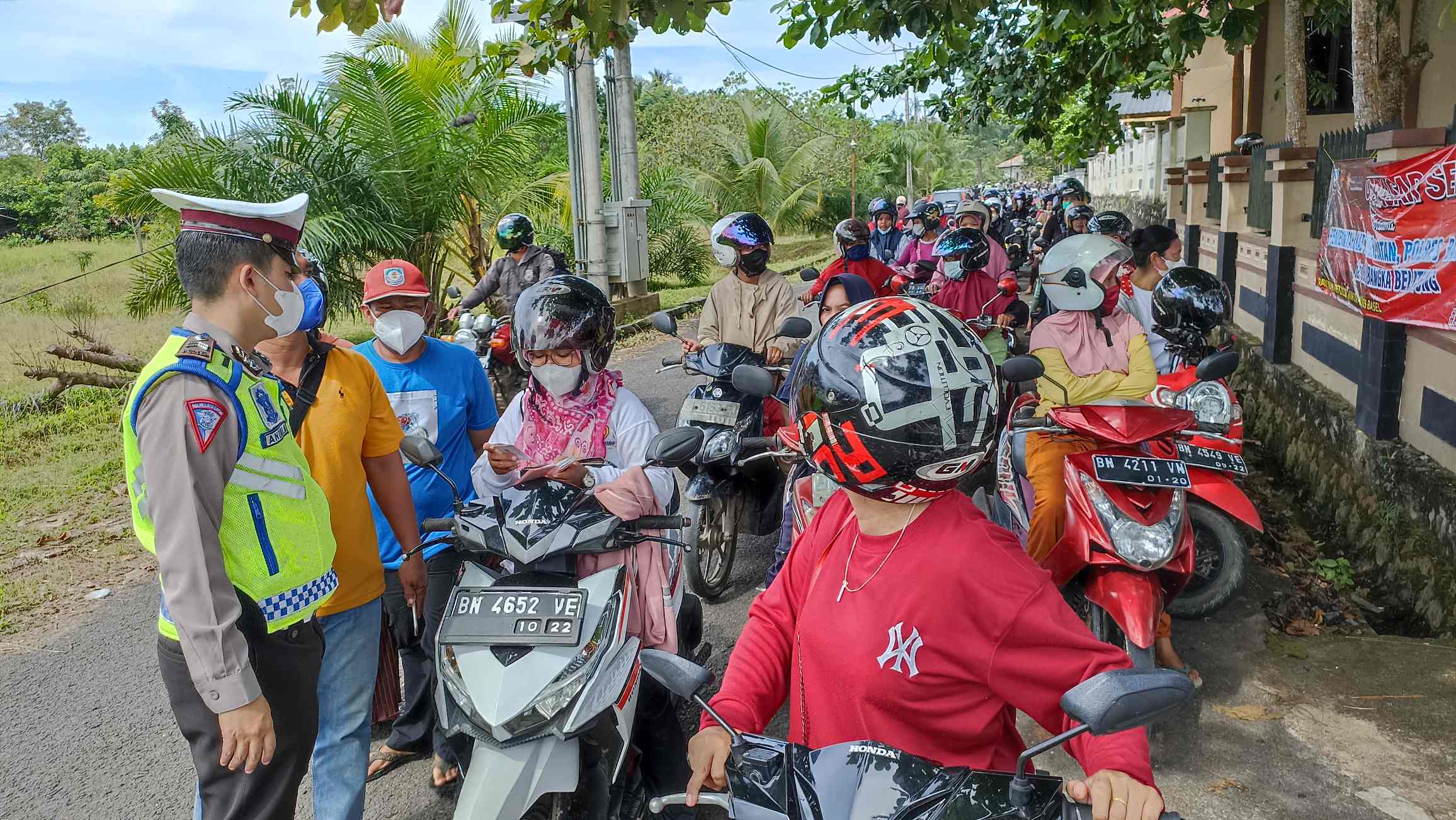 "Bisa dibubarkan apabila sudah berlebihan, tetapi sejauh kami melihat mereka yang mengantre tetap menggunakan masker, demi mencegah penyebaran Covid-19 di daerah kita ini," tegas Mikron.