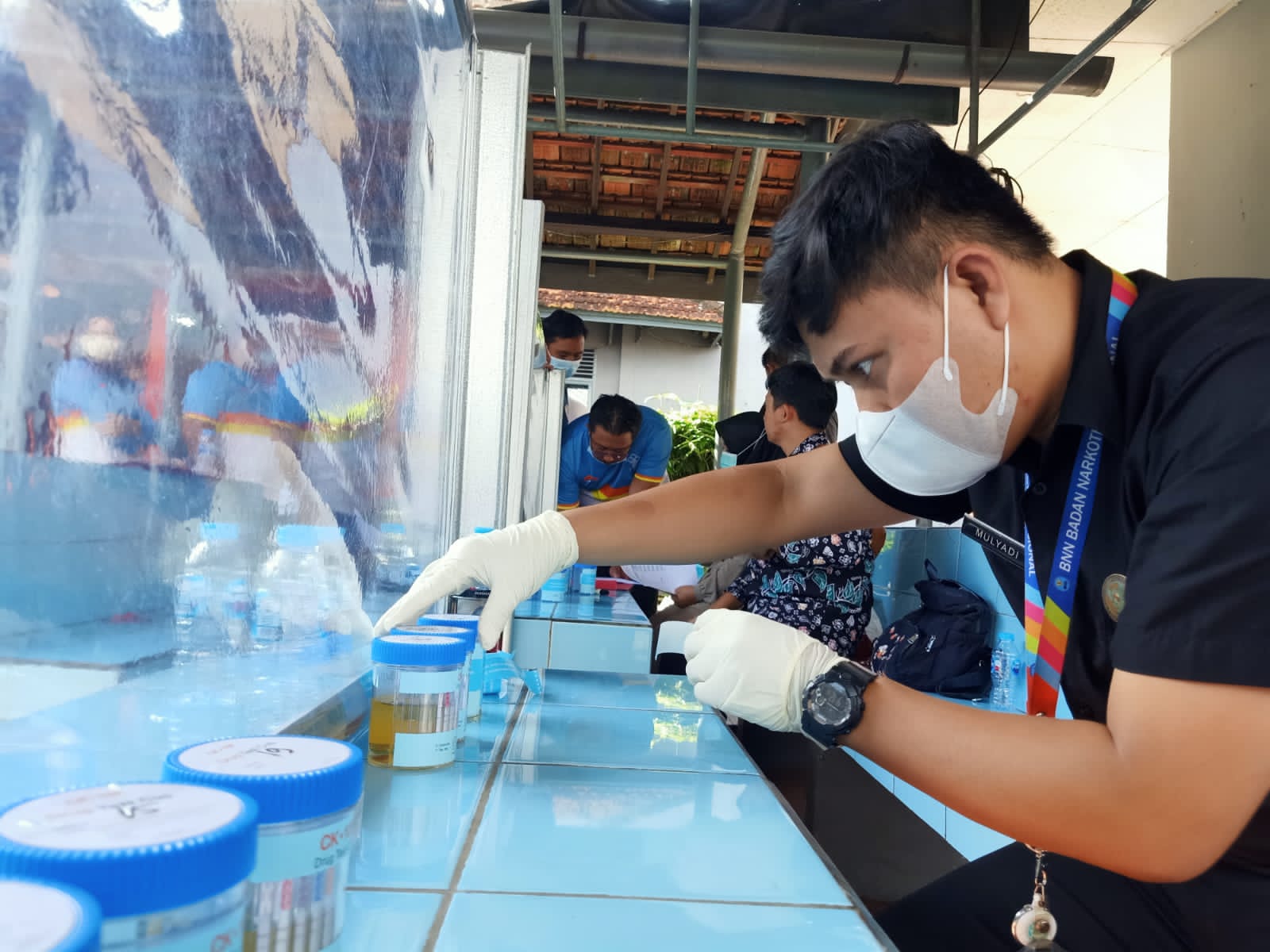 Personel yang dilibatkan dibagi menjadi tiga tim dengan rincian Tim dari Sat Shabara Polres Belitung melakukan pengamanan di toilet untuk pengambilan sample urine, tim Sat Reserse Narkoba melakukan monitoring dan pengawalan dan tim dari BNNK Belitung melakukan registrasi dan uji sampling dari sampel urine.