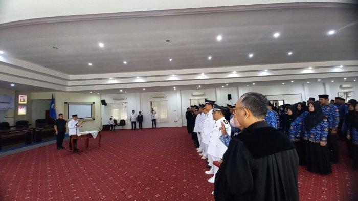 Pelantikan dan pengambilan sumpah atau janji jabatan pemimpin tinggi pratama, jabatan administrasi, dan fungsional di lingkungan pemerintah kota (Pemkot) Pangkalpinang itu berjumlah 95 orang.