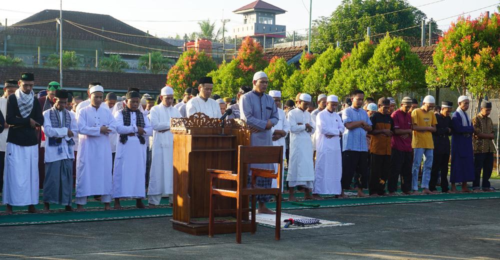 Dimulai dari salat Idul Adha secara berjemaah dan dilanjutkan pemotongan hewan kurban di Lapangan Utama Lapas pada Kamis (29/7/2023).