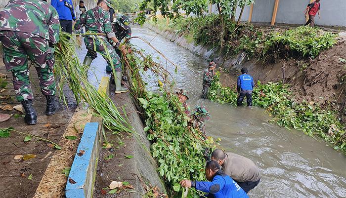Karya Bhakti Prajurit Kodim 0414 Belitung Ajak Unsur Gabungan Bersihkan Aliran Sungai Siburik