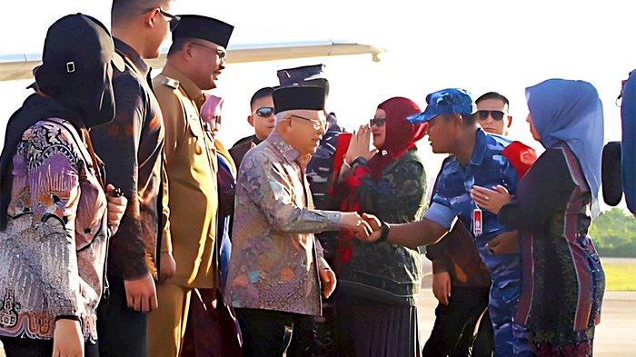 POSBELITUNG.CO, BANGKA - Komandan Lanud H AS Hanandjoeddin Letkol Pnb Dian Bashari didampingi Ketua Pia Ardhya Garini Cab 11/D.I Ny Karlina Dian Bashari, menyambut kedatangan Wakil Presiden Indonesia KH Ma'ruf Amin, di Bandara Depati Amir Pangkal Pinang, Provinsi Kepulauan Bangka Belitung, pada Selasa (28/5/2024).