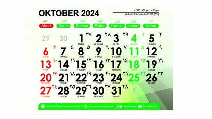 Kalender Oktober 2024 Lengkap dengan Tanggal 30 Oktober 2024 Memperingati Hari Apa?