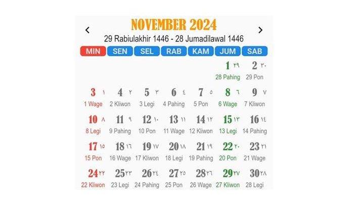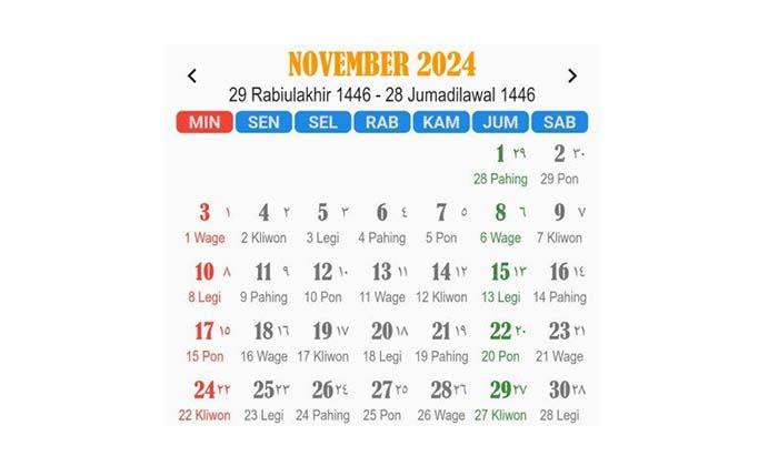 Kalender November 2024 Lengkap dengan Weton 5 November 2024