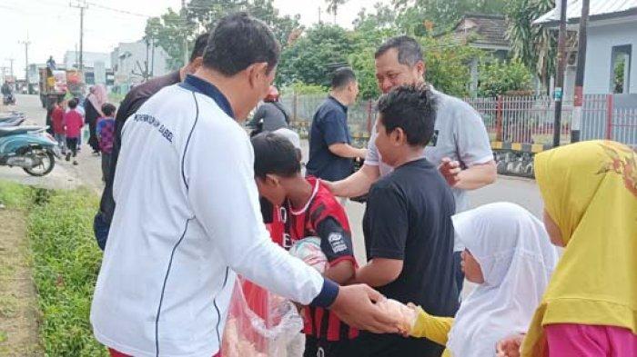 Kunrat juga ikut membagikan sarapan pagi kepada masyarakat yang melintasi depan Lapas Kelas IIA Pangkalpinang.