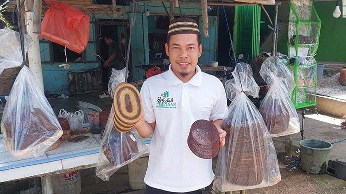 KOPIAH RESAM - Usaha kerajinan kopiah brand Aloeng Hardycraft, oleh-oleh khas Bangka Belitung di Jalan Pangkalpinang-Mentok, Desa Dendang, KM 73, Kecamatan Kelapa, Kabupaten Bangka Barat, Provinsi Kepulauan Bangka Belitung, Minggu (11/5/2025).