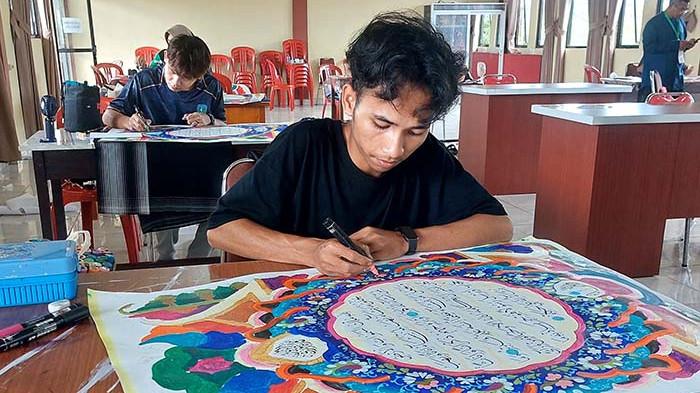 Keindahan Karya Kaligrafi Seni Menulis Ayat-Ayat Al Quran di MTQH 2025 Bangka Belitung