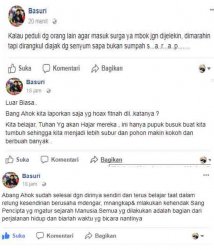 Akun facebook bertuliskan nama dan foto Basuri menuliskan sesuatu yang berkaitan langsung dengan Ahok