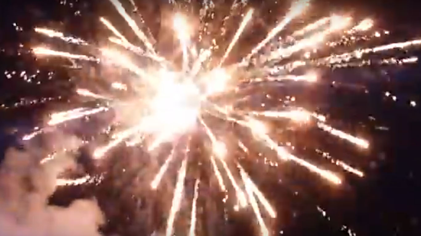 Ratusan letusan kembang api di udara selama sekitar 10 menit. Semua mata pengunjung tertuju ke atas langit, terkesima dengan cahaya warna warni