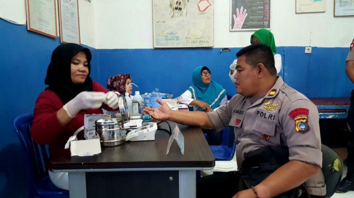 Mereka antre menunggu giliran. Ada yang duduk di kursi, ada pula yang berdiri di lorong kantor berdinding putih biru tersebut.