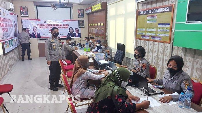 Mawaryati terlihat mengantre teratur di Selasar Gedung Polres Belitung Timur (Beltim). Dia membawa beberapa lembar kertas yang berisi identitas diriny