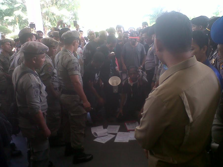 Permintaan Asisten Pemerintahan dan Kesra Setda Bangka Arman Agus ditolak pendemo. Para pedemo ngotot minta bertemu langsung dengan Bupati H. Tamizi