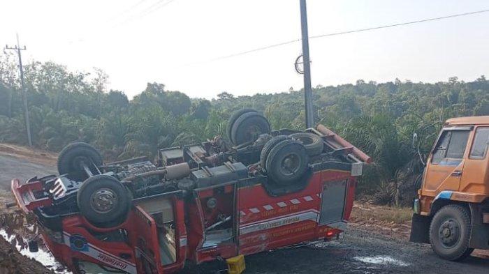 Mobil Damkar Bangka Selatan Terbalik